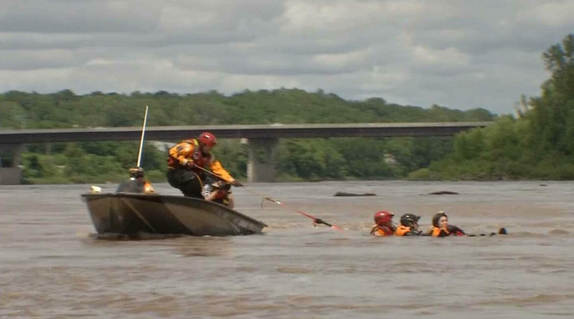 KC Firefighters Practice Skills on Roaring Missouri River